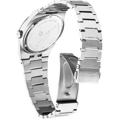 This Jacques du Manoir watch has a case made of stainless steel with a diameter of 41 mm and is fitted with a stainless steel band. Inside the case lies a Ronda movement and the watch features a Mineral crystal.