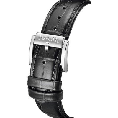 This Jaguar watch has a case made of stainless steel with a diameter of 45 mm and is fitted with a leather band. Inside the case lies a ETA movement and the watch features a Sapphire crystal.