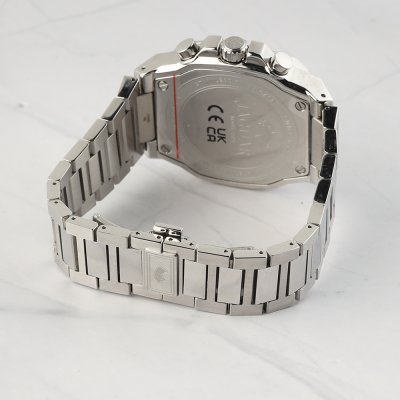 This Jaguar watch has a case made of stainless steel with a diameter of 42.9 mm and is fitted with a stainless steel band. Inside the case lies a Ronda movement and the watch features a Sapphire crystal.