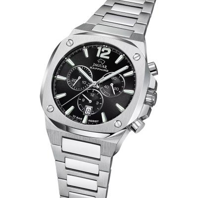 This Jaguar watch has a case made of stainless steel with a diameter of 42.9 mm and is fitted with a stainless steel band. Inside the case lies a Ronda movement and the watch features a Sapphire crystal.