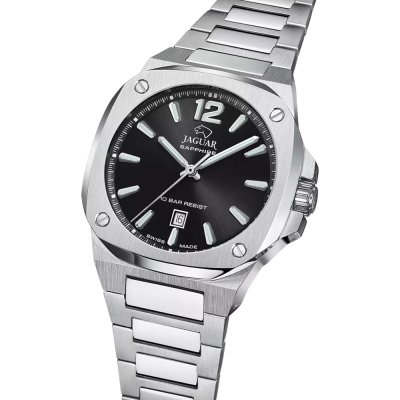 This Jaguar watch has a case made of stainless steel with a diameter of 41 mm and is fitted with a stainless steel band. Inside the case lies a Ronda movement and the watch features a Sapphire crystal.