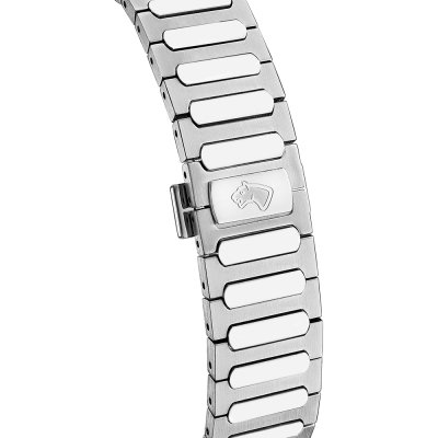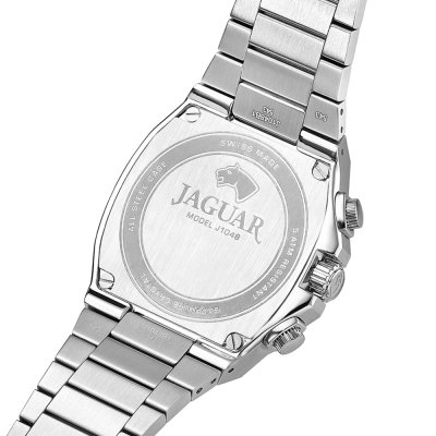 This Jaguar watch has a case made of stainless steel with a diameter of 41 mm and is fitted with a stainless steel band. Inside the case lies a Ronda movement and the watch features a Sapphire crystal.