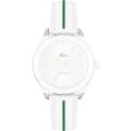 This Lacoste watch strap is made of silicone and is attached to the watch by means of pushpins. The band has a width of 17 mm and is closed by means of a buckle. The strap has a straight mount which means that this strap is suitable for all Lacoste watches with a straight mount.