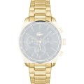 This Lacoste watch strap is made of stainless steel and is attached to the watch by means of pushpins. The band has a width of 21 mm and is closed by means of a deployment clasp with push buttons. The strap has a straight mount which means that this strap is suitable for all Lacoste watches with a straight mount.