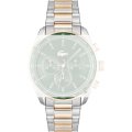 This Lacoste watch strap is made of stainless steel and is attached to the watch by means of pushpins. The band has a width of 21 mm and is closed by means of a deployment clasp with push buttons. The strap has no straight mount which means that this strap is only suitable for the watches listed below.