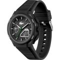 This Lacoste watch has a case made of Resin with a diameter of 45 mm and is fitted with a rubber band. Inside the case lies a Seiko movement and the watch features a Mineral crystal.