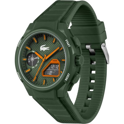 This Lacoste watch has a case made of Resin with a diameter of 45 mm and is fitted with a rubber band. Inside the case lies a Seiko movement and the watch features a Mineral crystal.