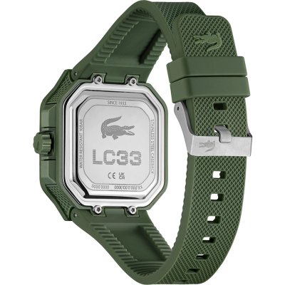 This Lacoste watch has a case made of Resin with a diameter of 44 mm and is fitted with a rubber band.