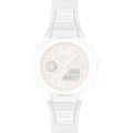 This Lacoste watch strap is made of resin and is attached to the watch by means of steel pins. The band has a width of 22 mm and is closed by means of a buckle. The strap has no straight mount which means that this strap is only suitable for the watches listed below.