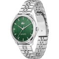 This Lacoste watch has a case made of stainless steel with a diameter of 42 mm and is fitted with a stainless steel band. Inside the case lies a Seiko movement and the watch features a Mineral crystal.