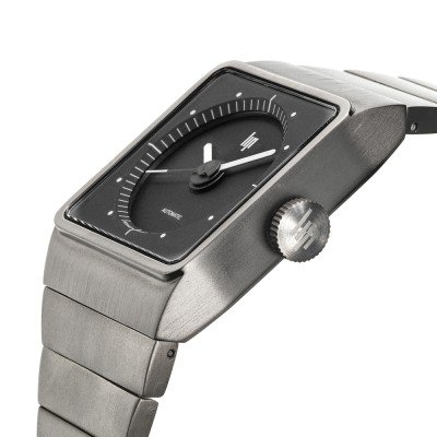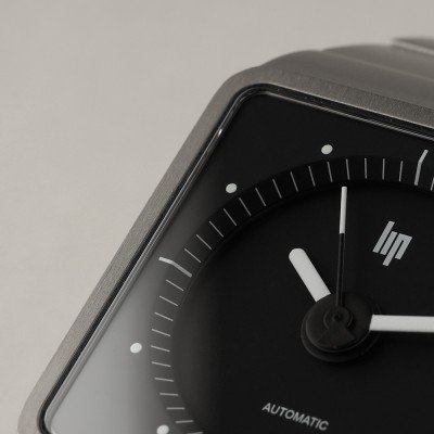 The father of modern French design Roger Tallon, designed the Lip Big TV watch series in the nineteenseventies. The sturdy square case and robust bracelet give the watch a retro feel, while at the same time, design details such as the crown, logo and recessed dial have an unmistakable timeless and modern appeal. This latest addition to the Lip Big TV family is a contemporary reinterpretation with a self-winding movement and an all-titanium case. The alloy gives it sober, pure lines, while retaining the design of the original model. The skeleton version of this watch features a titanium-toned movement, to be admired through the transparent caseback.