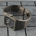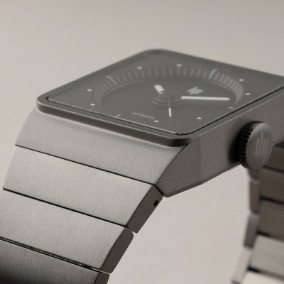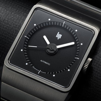 This LIP watch has a case made of titanium with a diameter of 35 mm and is fitted with a titanium band. Inside the case lies a Miyota movement and the watch features a Sapphire crystal.