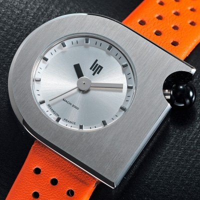 The Mach 2000 watch was designed for LIP by French industrial designer Roger Tallon. A prolific artist, Tallon is best known for his design of the French high speed train TGV. In 1975 he brought his knowledge of modern materials to LIP and created this now iconic watch. The Mach 2000 design keeps all the particulars that make a watch a watch, but its asymmetrical shape and atypical design combined with three primary colours breaks with the traditional-watch concept, making the Mach 2000 a truly singular and much sought after watch.