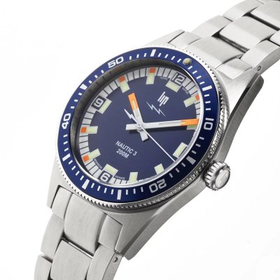 This LIP watch has a case made of stainless steel with a diameter of 39 mm and is fitted with a stainless steel band. Inside the case lies a Seiko Instruments Inc. movement and the watch features a Single anti-reflective sapphire crystal.