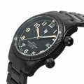 In the early 1930s, LIP created the Type 14 aircraft watch. Its sturdy case was made of a light alloy, and both winding and time-setting were done by means of a fluted bezel, making it easy to grip, even when wearing gloves. The mechanism was fitted to the instrument panels of French Air Force fighters of the day that also operated during WWII. The new Type 14 watch is inspired by this famous timepiece. It features a bi-directional internal rotating bezel, activated by the dedicated crown positioned at 2 o'clock. Like the original bezel, which was screwed onto the dashboard, it features a triangular index designed to provide a reference point for measuring time, so typical of aviator watches. The black dial is highly legible thanks to the presence of luminescent numerals and hands, and features a finely textured airport tarmac-like surface. All Type 14 watches are individually numbered, even though it is not produced in a limited series.