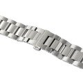 This Longines watch strap is made of stainless steel and is attached to the watch by means of pushpins. The band has a width of 15 mm and is closed by means of a butterfly clasp with push buttons. The strap has no straight mount which means that this strap is only suitable for the watches listed below.