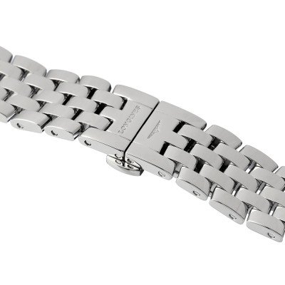 This Longines watch strap is made of stainless steel and is attached to the watch by means of pushpins. The band has a width of 15 mm and is closed by means of a butterfly clasp with push buttons. The strap has no straight mount which means that this strap is only suitable for the watches listed below.
