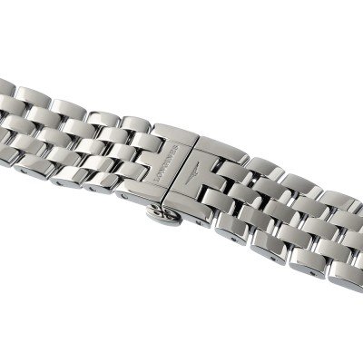 This Longines watch strap is made of stainless steel and is attached to the watch by means of pushpins. The band has a width of 17 mm and is closed by means of a butterfly clasp with push buttons. The strap has no straight mount which means that this strap is only suitable for the watches listed below.