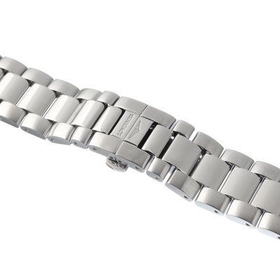 This Longines watch strap is made of stainless steel and is attached to the watch by means of pushpins. The band has a width of 20 mm and is closed by means of a butterfly clasp with push buttons. The strap has no straight mount which means that this strap is only suitable for the watches listed below.
