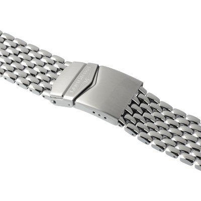 This Longines watch strap is made of stainless steel and is attached to the watch by means of pushpins. The band has a width of 21 mm and is closed by means of a deployment clasp with safety. The strap has no straight mount which means that this strap is only suitable for the watches listed below.