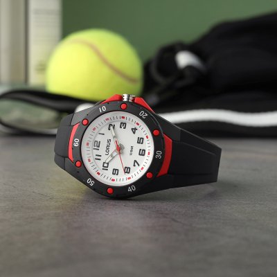 This Lorus watch has a case made of Resin with a diameter of 36 mm and is fitted with a rubber band. Inside the case lies a Seiko Instruments Inc. movement and the watch features a Acrylic crystal.