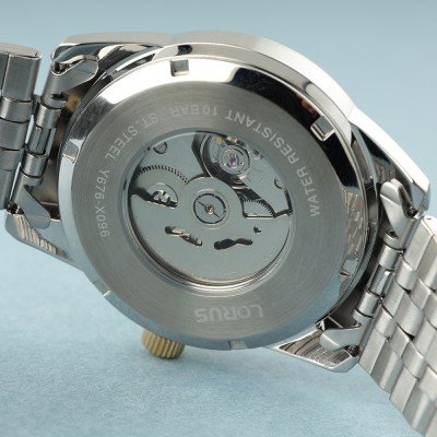 This Lorus watch has a case made of stainless steel with a diameter of 42 mm and is fitted with a stainless steel band. Inside the case lies a Seiko Instruments Inc. movement and the watch features a Hardlex crystal crystal.