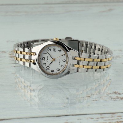 This Lorus watch has a case made of stainless steel with a diameter of 26 mm and is fitted with a stainless steel band. Inside the case lies a Seiko Instruments Inc. movement and the watch features a Mineral crystal.