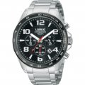 This Lorus watch has a case made of stainless steel with a diameter of 44 mm and is fitted with a stainless steel band. Inside the case lies a Seiko Instruments Inc. movement and the watch features a Hardlex crystal crystal.