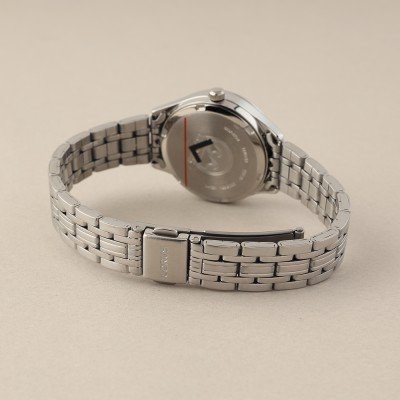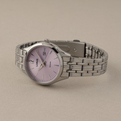 This Lorus watch has a case made of stainless steel with a diameter of 30 mm and is fitted with a stainless steel band. Inside the case lies a Seiko Instruments Inc. movement and the watch features a Hardlex crystal crystal.
