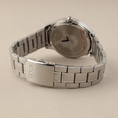 This Lorus watch has a case made of stainless steel with a diameter of 40 mm and is fitted with a stainless steel band. Inside the case lies a Seiko movement and the watch features a Hardlex crystal crystal.