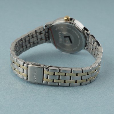 This Lorus watch has a case made of stainless steel with a diameter of 30 mm and is fitted with a stainless steel band. Inside the case lies a Seiko Instruments Inc. movement and the watch features a Hardlex crystal crystal.