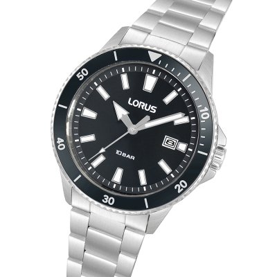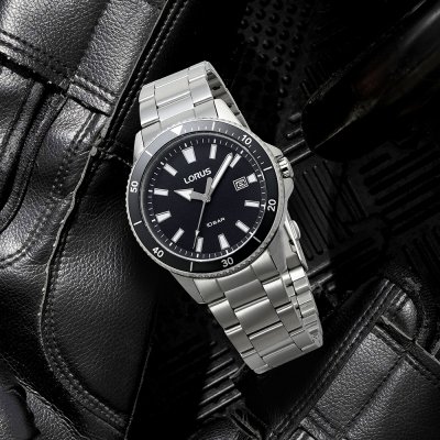 This Lorus watch has a case made of stainless steel with a diameter of 40 mm and is fitted with a stainless steel band. Inside the case lies a Seiko Instruments Inc. movement and the watch features a Hardlex crystal crystal.