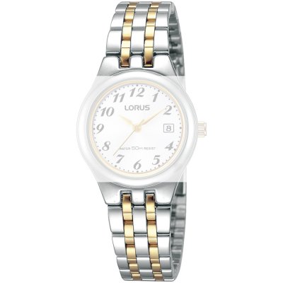 This Lorus watch strap is made of stainless steel and is attached to the watch by means of steel pins. The band has a width of 14 mm and is closed by means of a deployment clasp with push buttons. The strap has no straight mount which means that this strap is only suitable for the watches listed below.