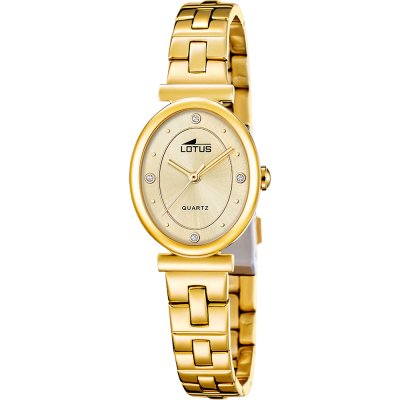 This Lotus watch has a case made of stainless steel with a diameter of 23 mm and is fitted with a stainless steel band. Inside the case lies a Miyota movement and the watch features a Mineral crystal.