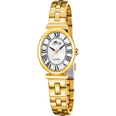 This Lotus watch has a case made of stainless steel with a diameter of 23 mm and is fitted with a stainless steel band. Inside the case lies a Miyota movement and the watch features a Mineral crystal.