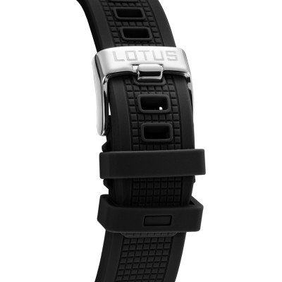 This Lotus watch has a case made of stainless steel with a diameter of 44 mm and is fitted with a rubber band. Inside the case lies a Miyota movement and the watch features a Mineral crystal.