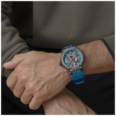 This Lotus watch has a case made of stainless steel with a diameter of 46 mm and is fitted with a rubber band. Inside the case lies a Miyota movement and the watch features a Mineral crystal.