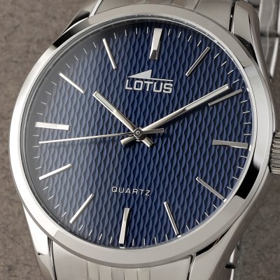 This Lotus watch has a case made of stainless steel with a diameter of 42 mm and is fitted with a stainless steel band. Inside the case lies a Miyota movement and the watch features a Mineral crystal.