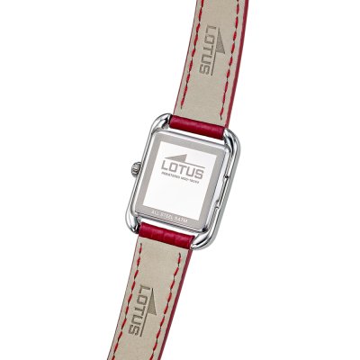 This Lotus watch has a case made of stainless steel with a diameter of 23 mm and is fitted with a leather band. Inside the case lies a Miyota movement and the watch features a Mineral crystal.