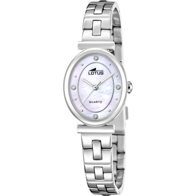 This Lotus watch has a case made of stainless steel with a diameter of 28 mm and is fitted with a stainless steel band. Inside the case lies a Miyota movement and the watch features a Mineral crystal.