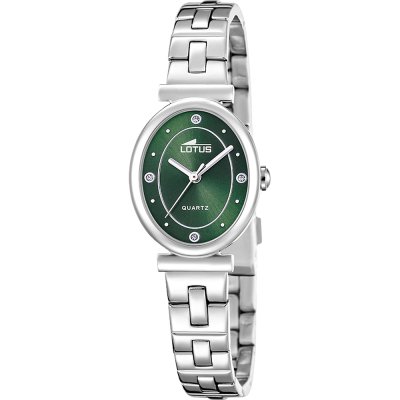This Lotus watch has a case made of stainless steel with a diameter of 28 mm and is fitted with a stainless steel band. Inside the case lies a Miyota movement and the watch features a Mineral crystal.