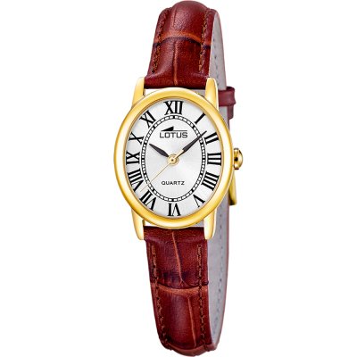 This Lotus watch has a case made of stainless steel with a diameter of 28 mm and is fitted with a leather band. Inside the case lies a Miyota movement and the watch features a Mineral crystal.