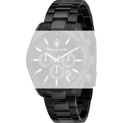 This Maserati watch strap is made of stainless steel and is attached to the watch by means of pushpins. The band has a width of 22 mm and is closed by means of a deployment clasp with safety. The strap has no straight mount which means that this strap is only suitable for the watches listed below.