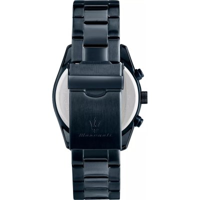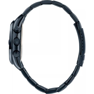 This Maserati watch has a case made of stainless steel with a diameter of 43 mm and is fitted with a stainless steel band. Inside the case lies a Seiko Instruments Inc. movement and the watch features a Mineral crystal.