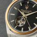This Maserati watch has a case made of stainless steel with a diameter of 41 mm and is fitted with a stainless steel band. Inside the case lies a Miyota movement and the watch features a Sapphire coated mineral crystal.
