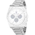 This Maserati watch has a case made of stainless steel with a diameter of 43 mm and is fitted with a stainless steel band. Inside the case lies a Miyota movement and the watch features a Mineral crystal.