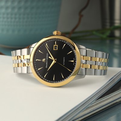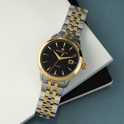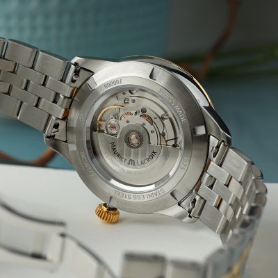This Maurice Lacroix watch has a case made of stainless steel with a diameter of 40 mm and is fitted with a stainless steel band. Inside the case lies a Sellita movement and the watch features a Double anti-reflective sapphire crystal.