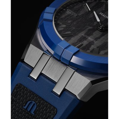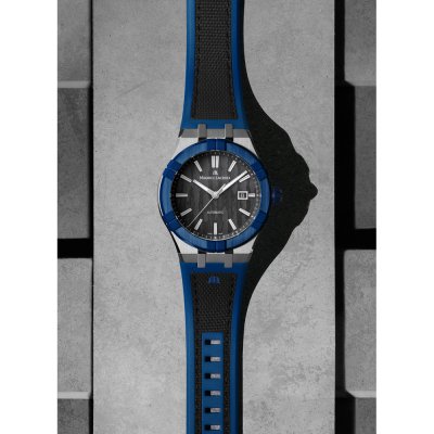This Maurice Lacroix watch has a case made of Stainless steel and ceramic with a diameter of 43 mm and is fitted with a rubber band. Inside the case lies a Sellita movement and the watch features a Sapphire crystal.