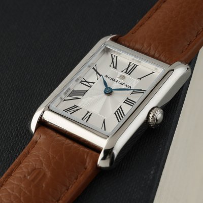 Bring a touch of Art Deco finesse to your wrist with the Maurice Lacroix Fiaba Square women's watch. The classic style with Roman numerals and striking blued hands, combined with a very slim profile of just 7 mm, gives this watch a chic, elegant look. The finish is, as we've come to expect from Maurice Lacroix, of a very high standard.