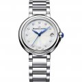 This Maurice Lacroix watch has a case made of stainless steel with a diameter of 32 mm and is fitted with a stainless steel band. Inside the case lies a ETA movement and the watch features a Sapphire crystal.
